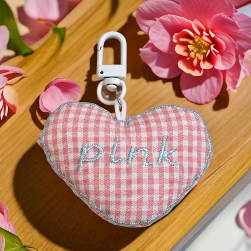 Wholesale Cute cotton three-dimensional plaid love key chain schoolbag bag accessories