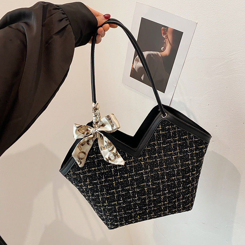 Wholesale Large Capacity Tote Bag Stitching Contrast Plaid Shoulder Bag