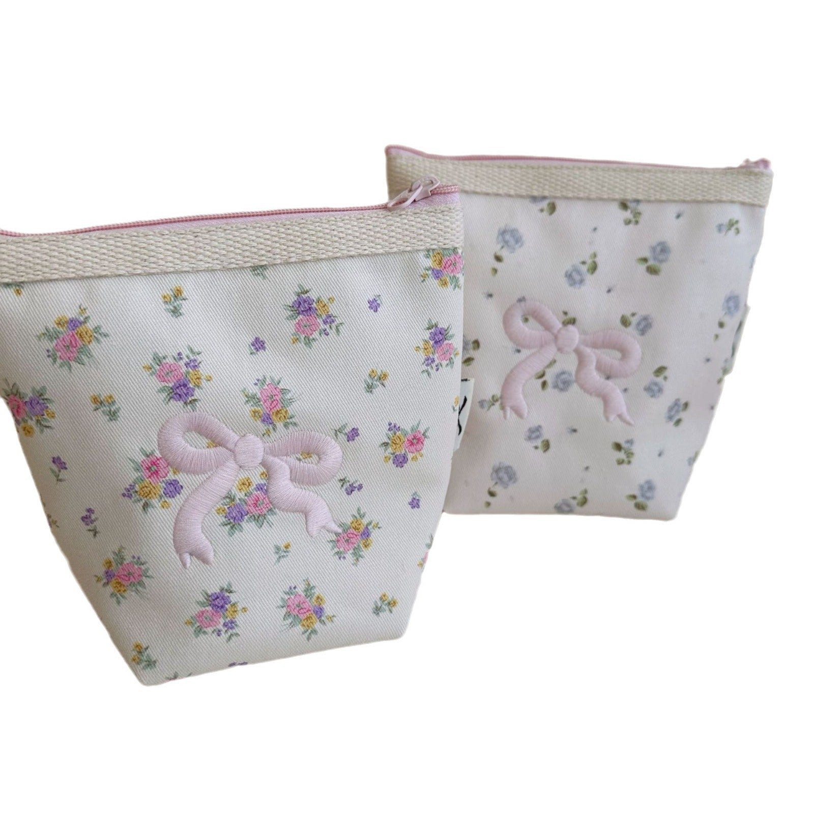 Wholesale Small floral cotton fabric bow embroidery cosmetic bag travel storage bag lipstick bag factory