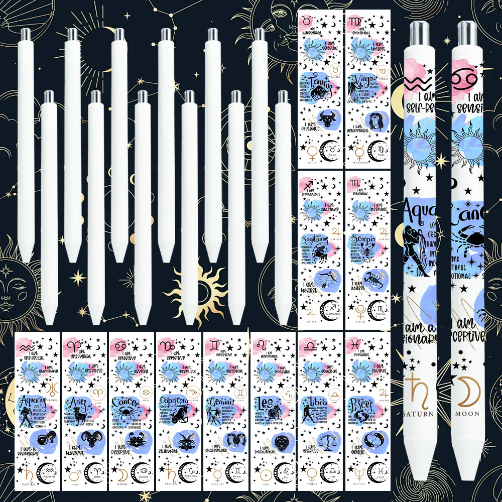 Wholesale 16pcs Twelve Zodiac Signs Pen Stickers Wraps