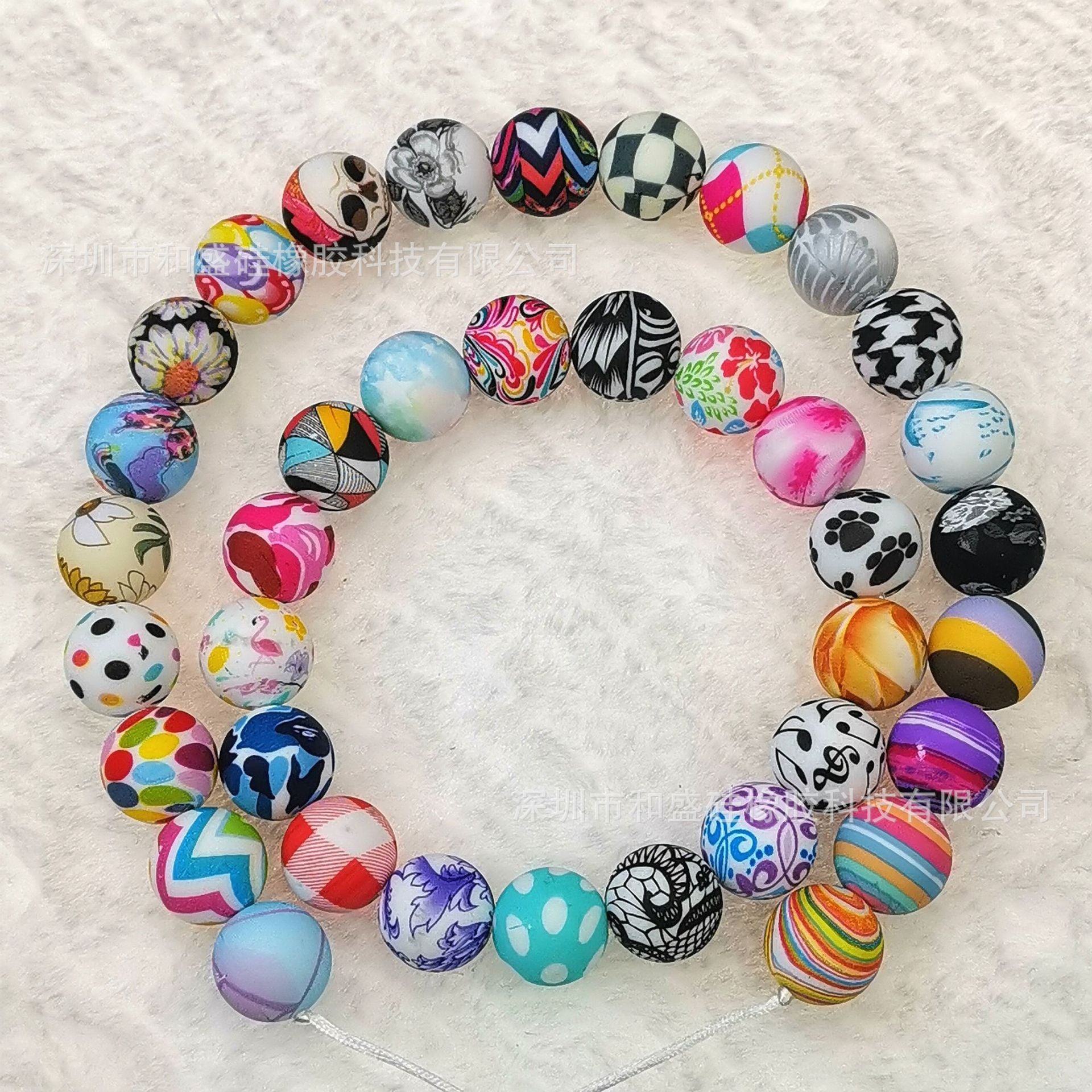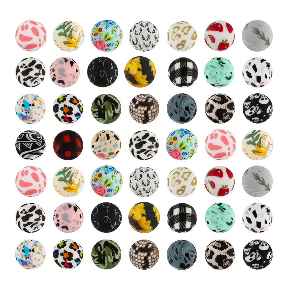 Wholesale 50pcs 15mm Water Transfer Sunflower Pattern Silicone Beads