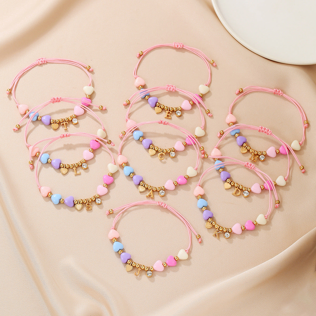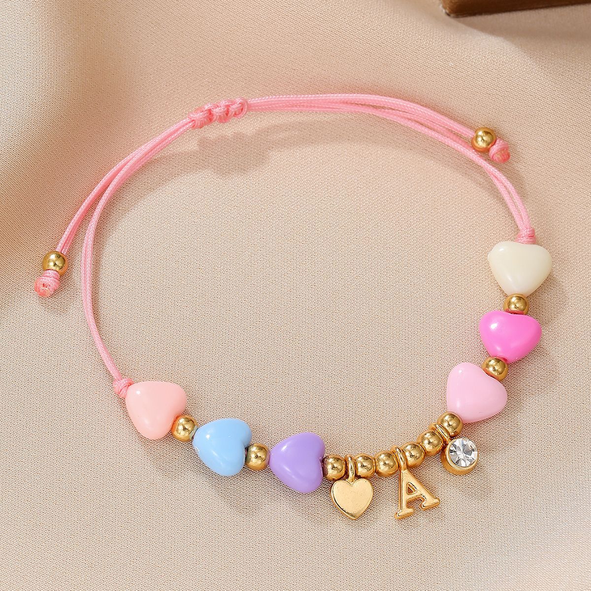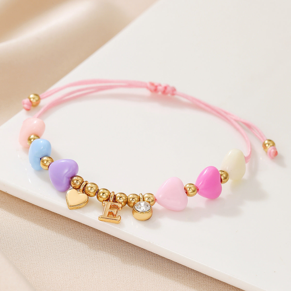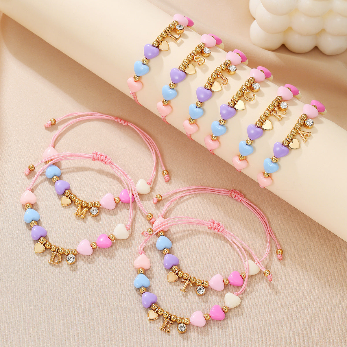 Wholesale Cute Adjustable Colorful Beaded Heart Alloy Letter Pendant Children' s Bracelet