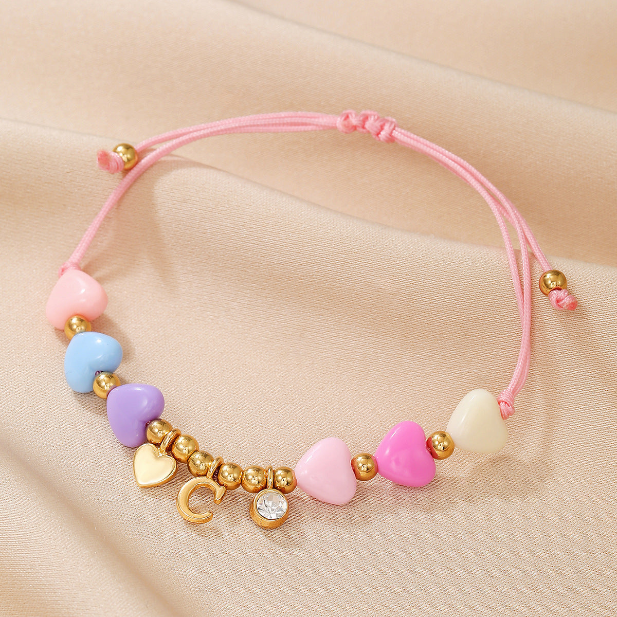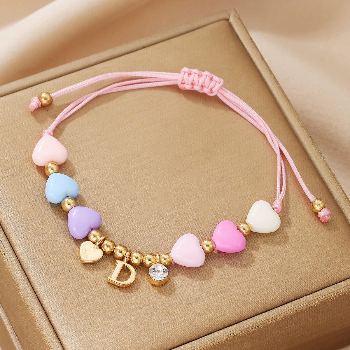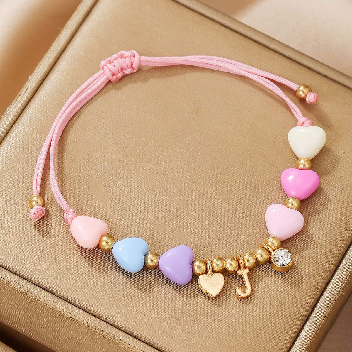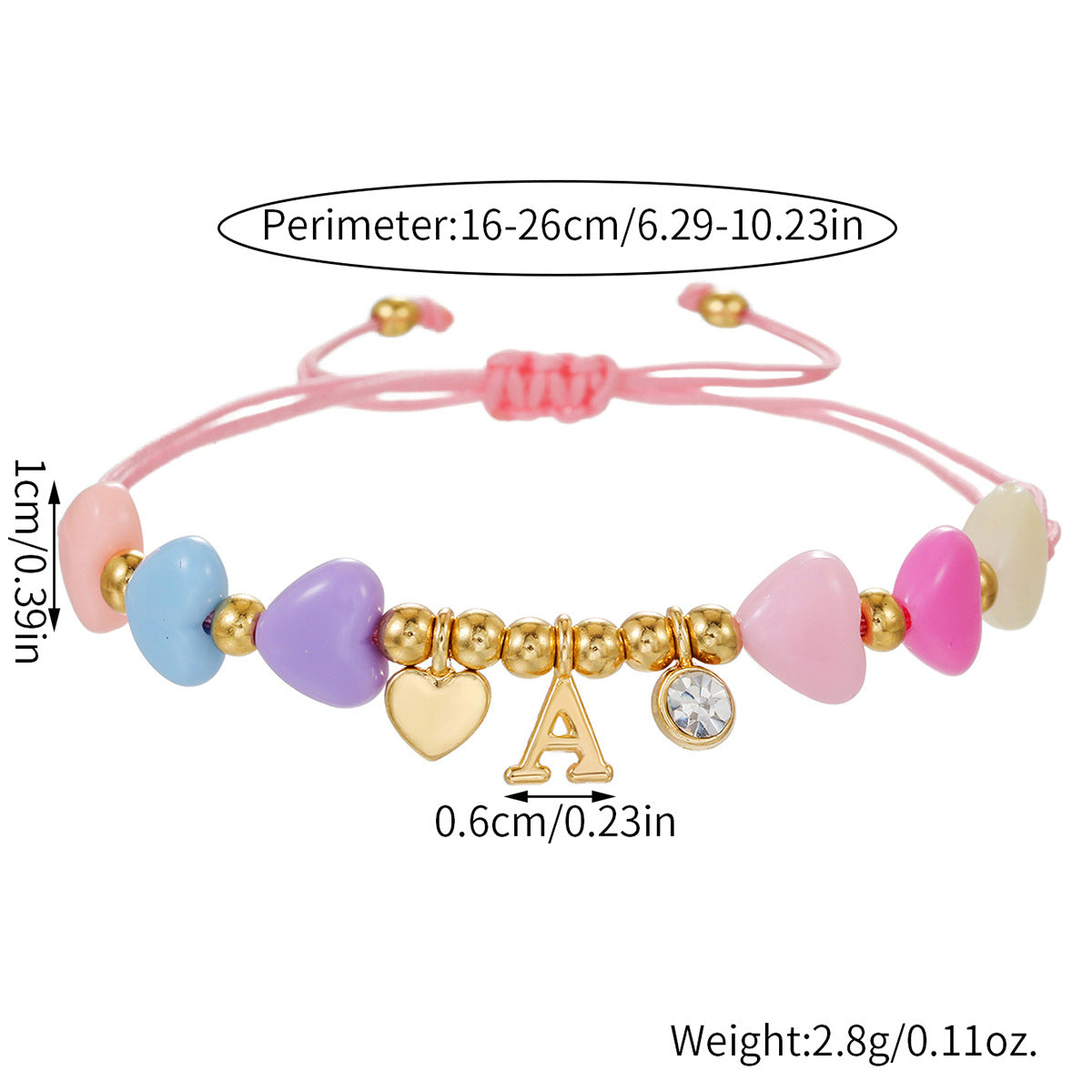 Wholesale Cute Adjustable Colorful Beaded Heart Alloy Letter Pendant Children' s Bracelet