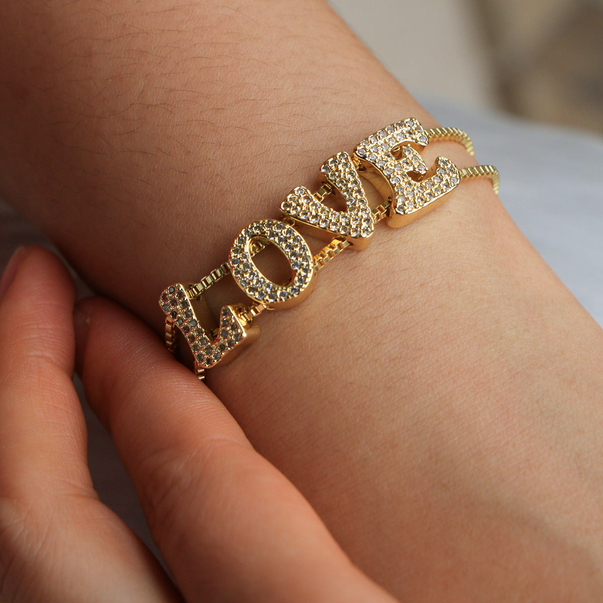 Wholesale Mother' s Day LOVE English letter diamond studded bracelet