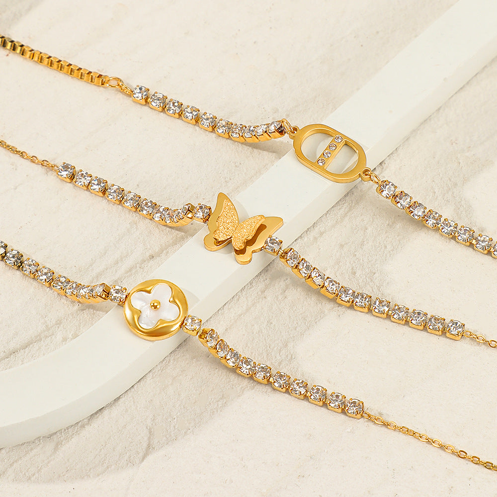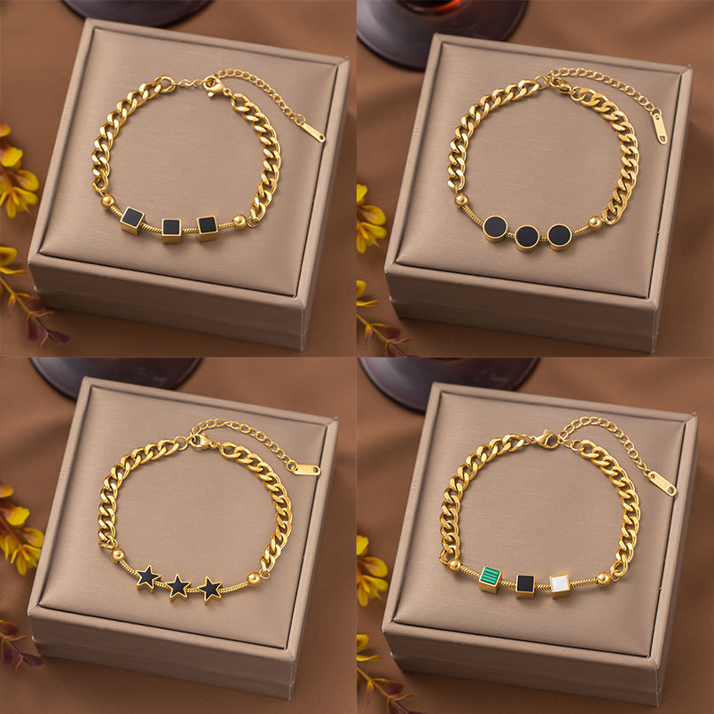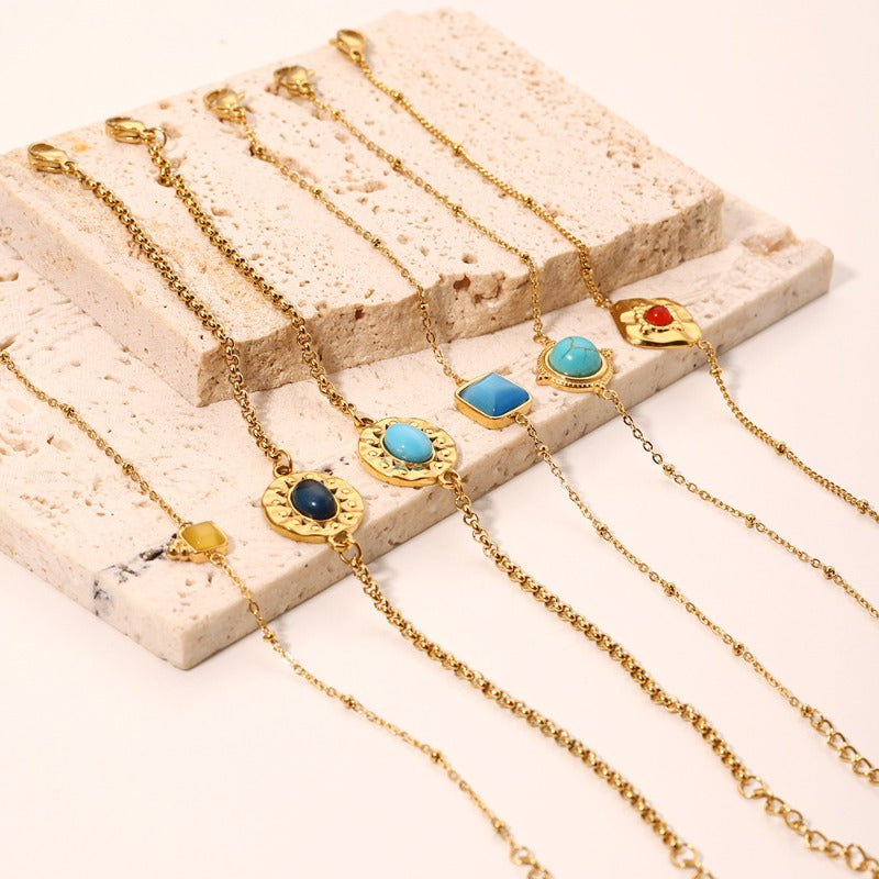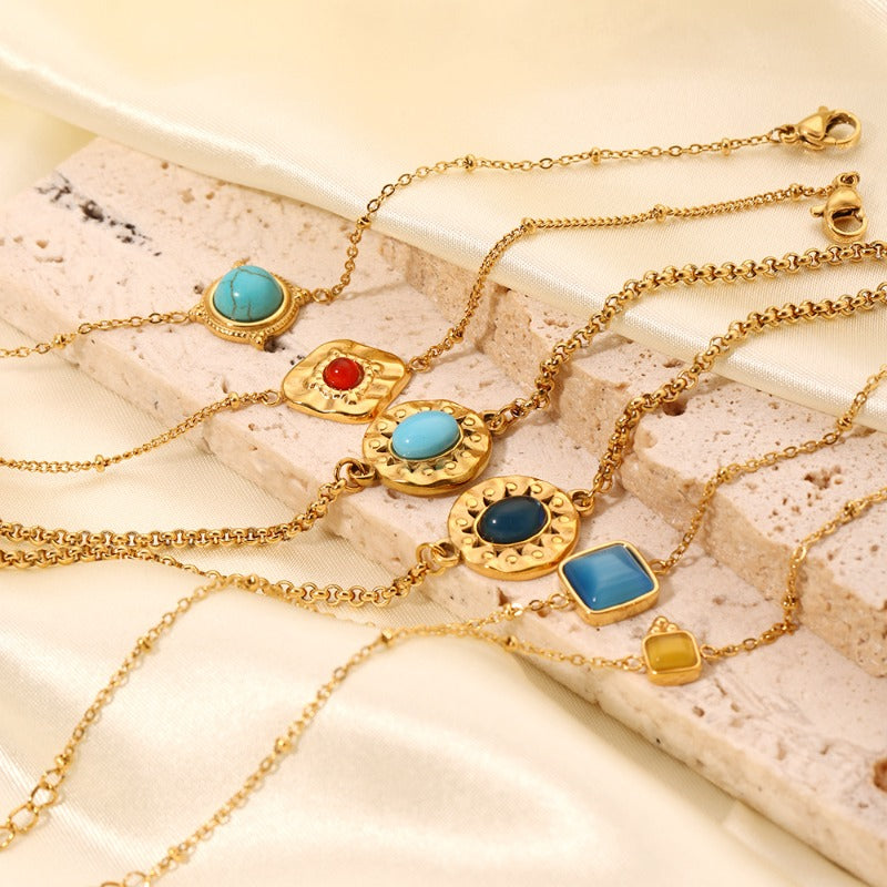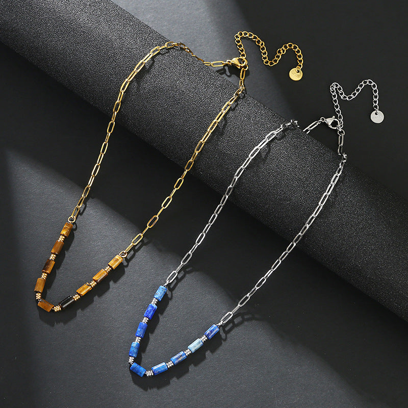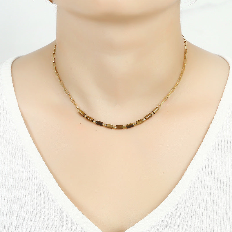 Wholesale Paper Clip Chain Tiger Eye Blue Gold Stone Stainless Steel Neckplaces