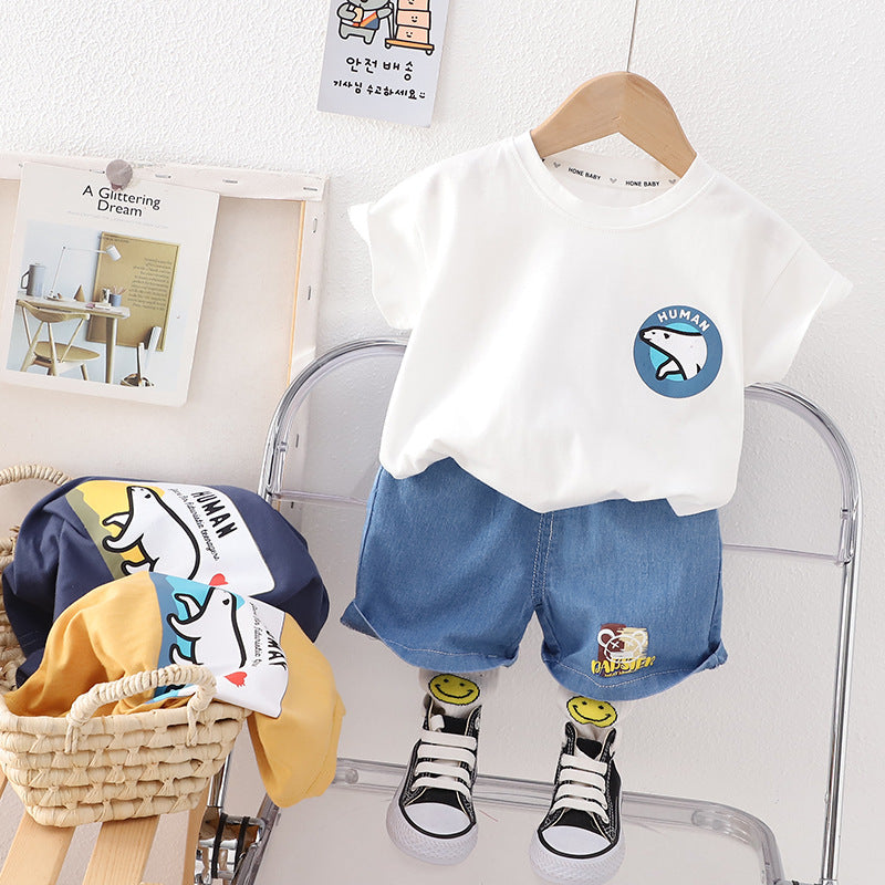 Wholesale Boys' Minimalist Short Sleeved Shorts Cotton Two-piece Set