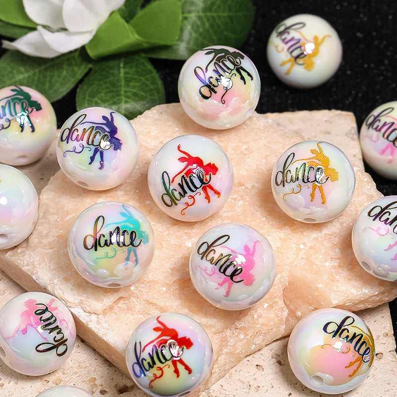 Wholesale 50pcs 20mm Acrylic UV Plated Dancer Printed Beads DIY Round Beads