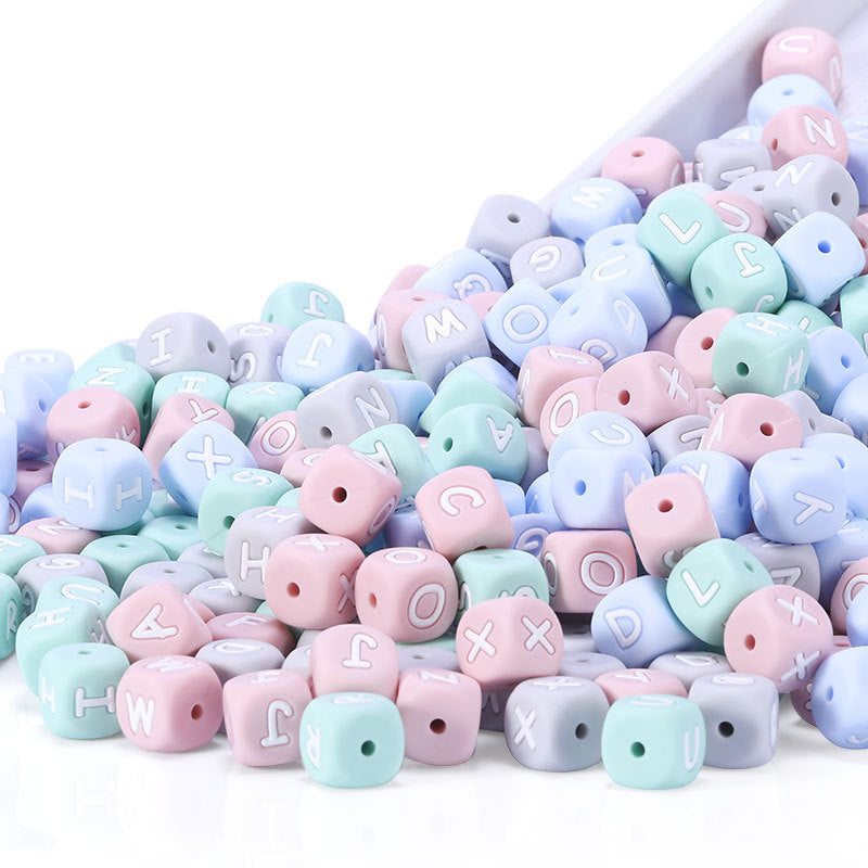 Al por mayor 50 piezas 26 alfabeto de 12 mm de cuentas de silicona