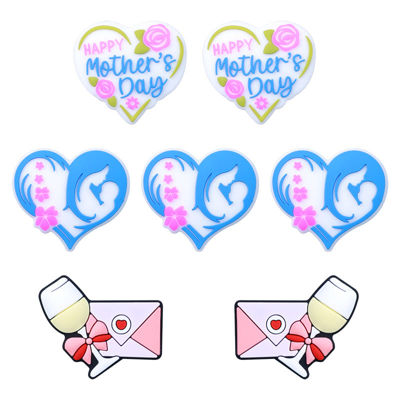 Wholesale 20PCS/PACK Mother's Day Heart-shaped Silicone Beads