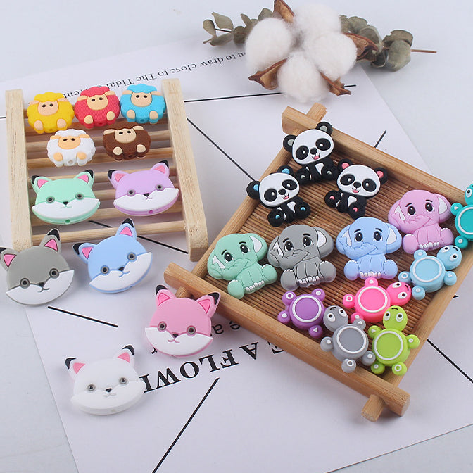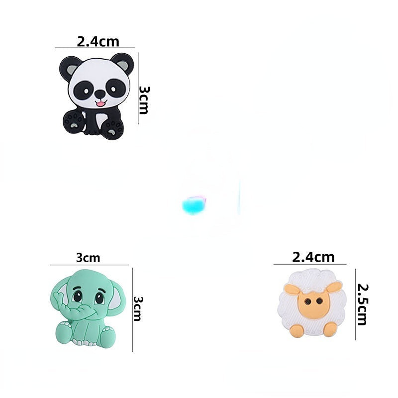 3 piezas al por mayor 3 cm de silicona elefante panda cuentas de ovejas