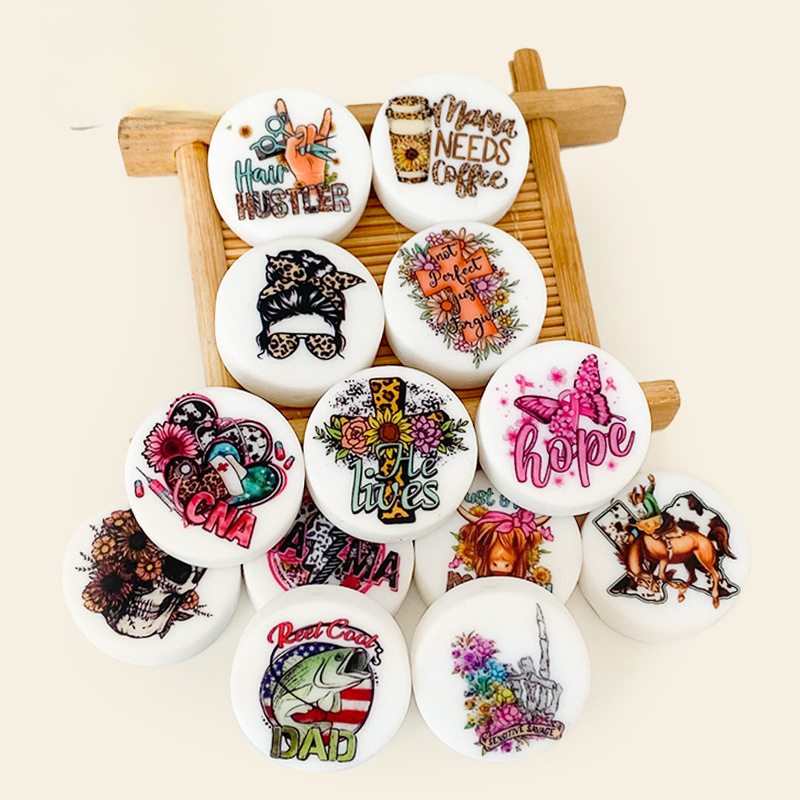 Cuentas de impresión de color de impresión de silicona de 10 piezas/paquete al por mayor