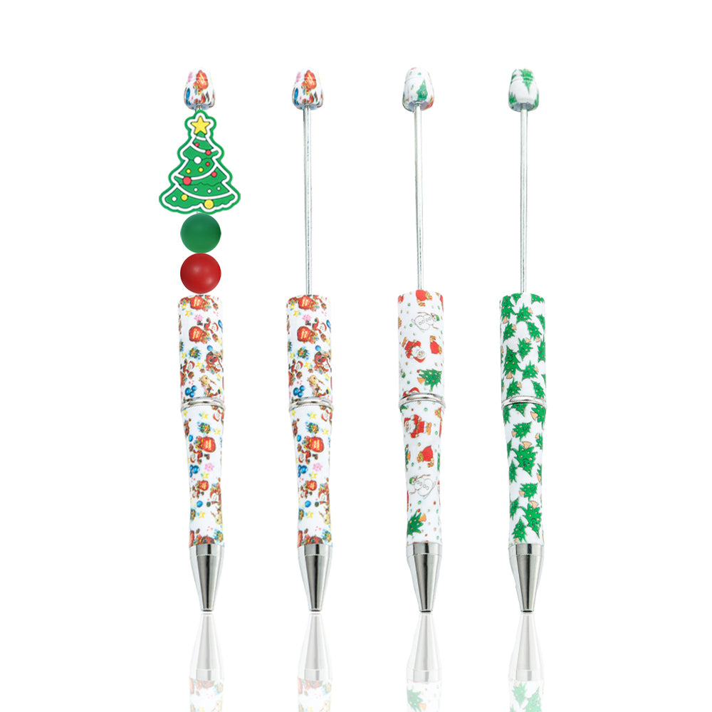 Wholesale Beadable Pens Christmas Print Plastic Pen DIY for Beaded