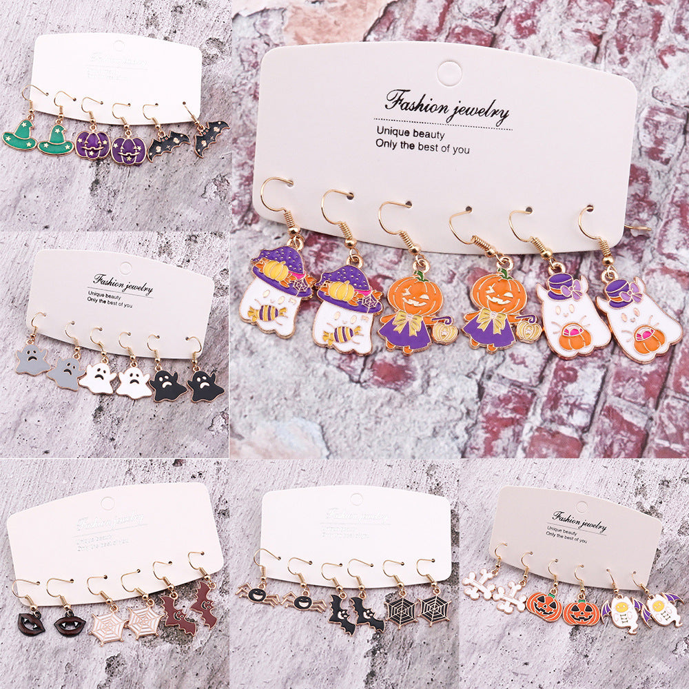 Wholesale Halloween Decorations Ghost Pumpkin Elf Bat Alloy Earrings