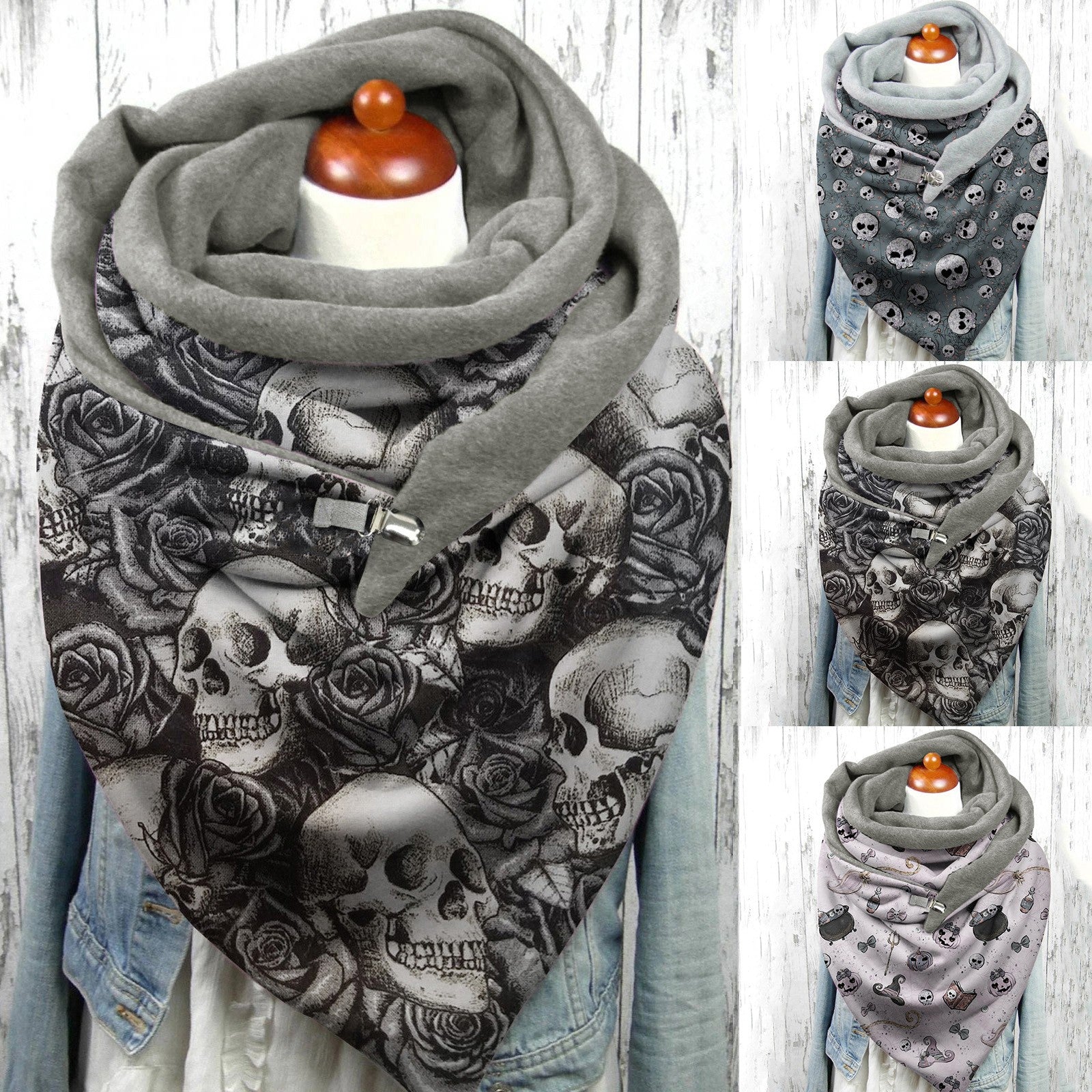 Wholesale Halloween Printed Square Polyester Neck Scarf with Buckle