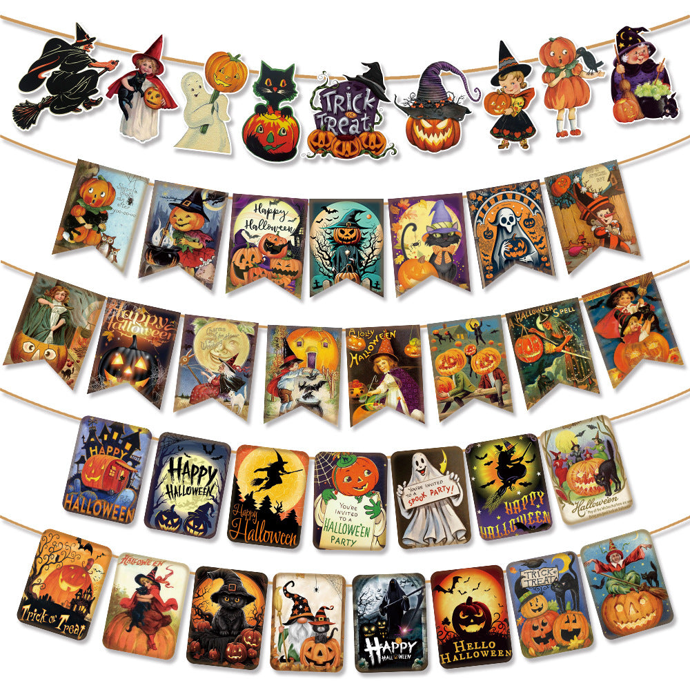 Wholesale New Halloween Pumpkin Head Retro Banner Pull Flag Party Scene Setting
