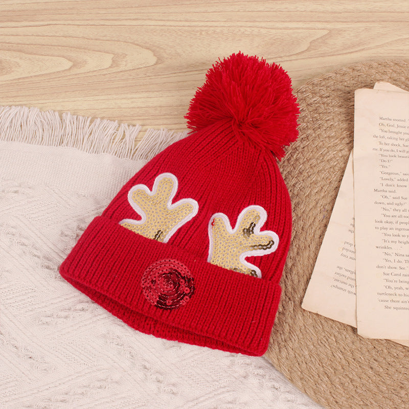 Wholesale Acrylic Cartoon Sequins Cute Christmas Antlers Kids Knitted Hat