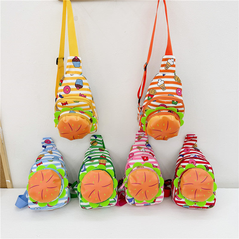 Hamburguesa de dibujos animados al por mayor linda bolsa de lienzo de cuerpo cruzado para niños