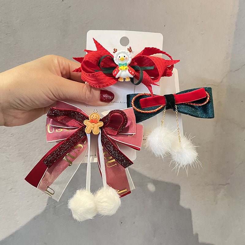 Wholesale Christmas Children's Hair Ball Double Layer Bow Bell Fabric Hairpin