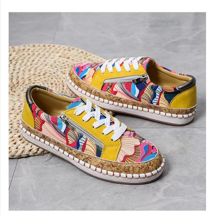 Wholesale Color Lace Up Flat Bottomed Canvas Single Shoes