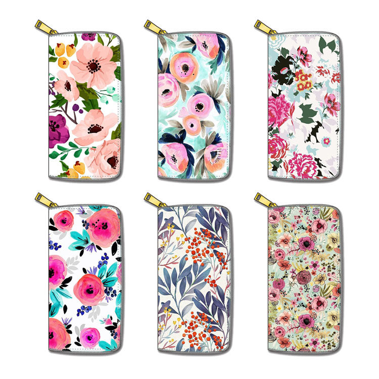 Venta al por mayor Cartera larga con cremallera de flor PU