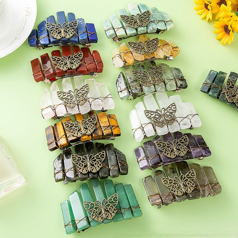 Pinzas para el cabello de metal con peine para el cabello de mariposa de cristal natural al por mayor