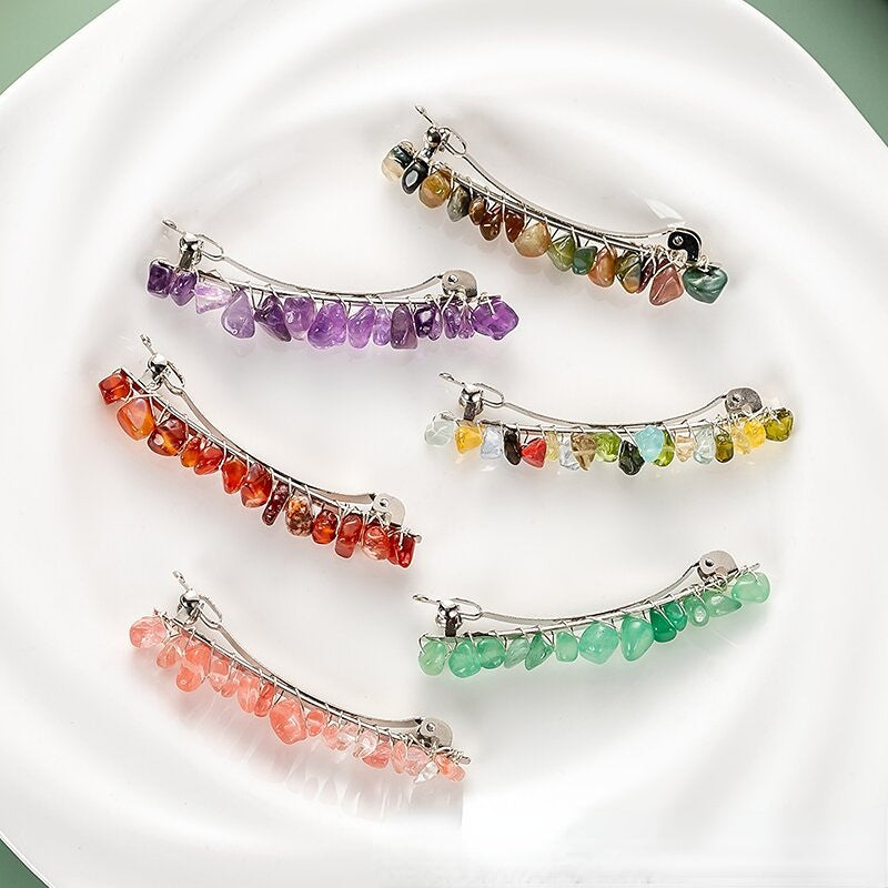 Pinzas para el cabello de metal de grava de cristal natural al por mayor
