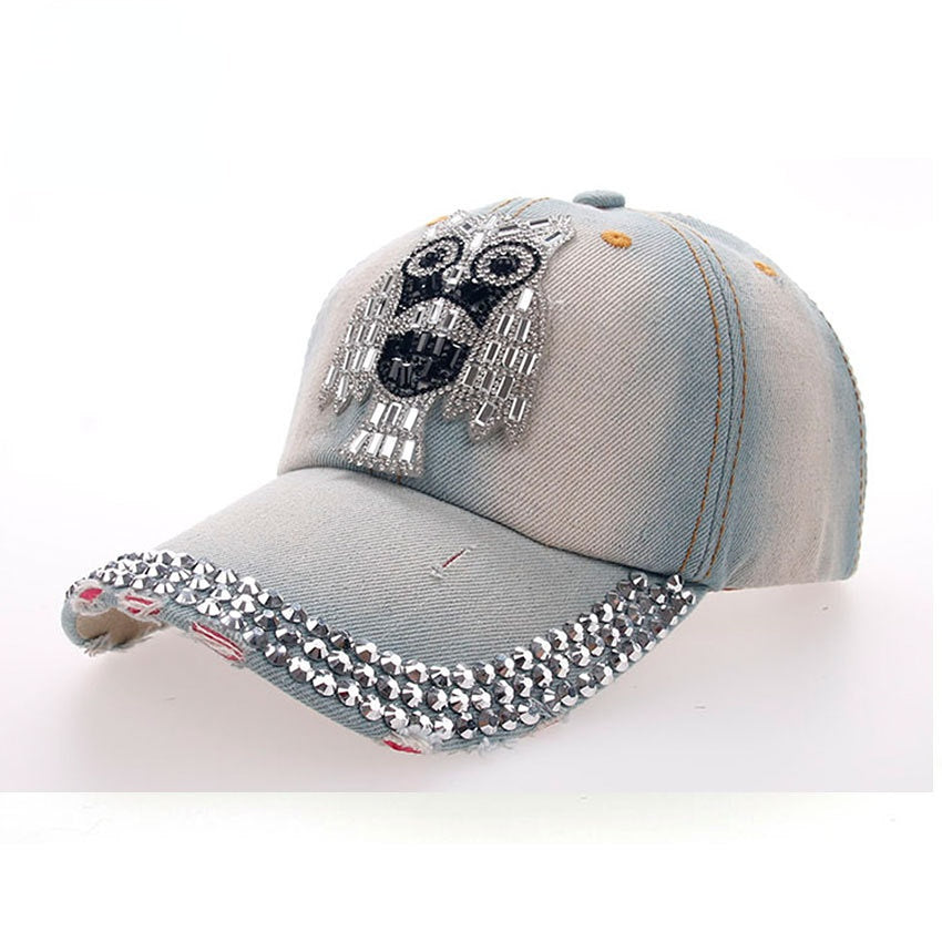 Venta al por mayor Gorra de béisbol de mezclilla con tres hileras de puntos de búho