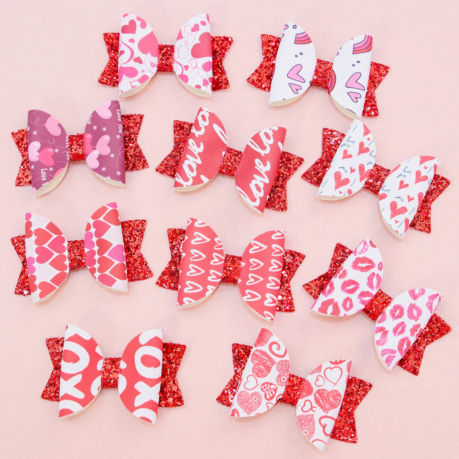 Wholesale Valentine's Day Love Letter Printing Pattern Bow Knots Fabric Hair Clip
