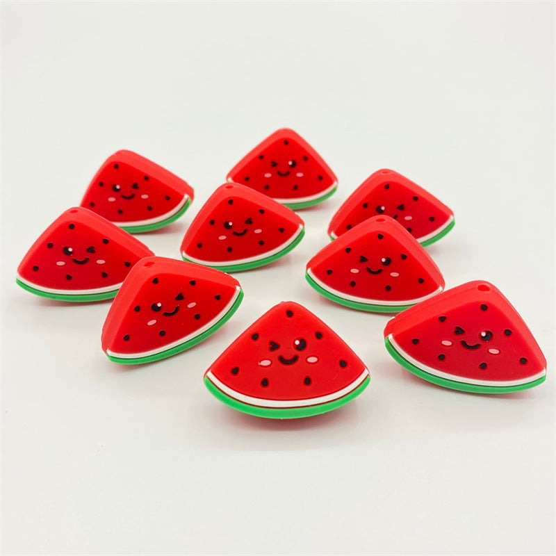 Cuentas de silicona de sandía de dibujos animados al por mayor 10 piezas