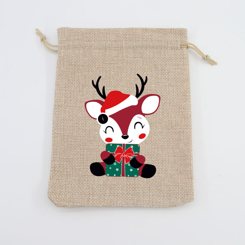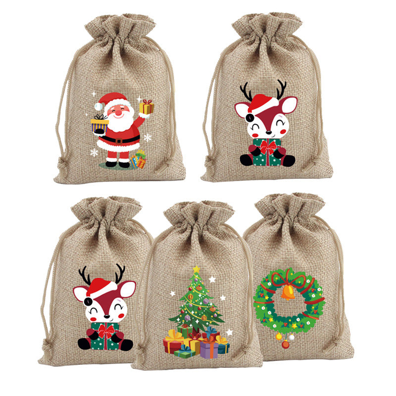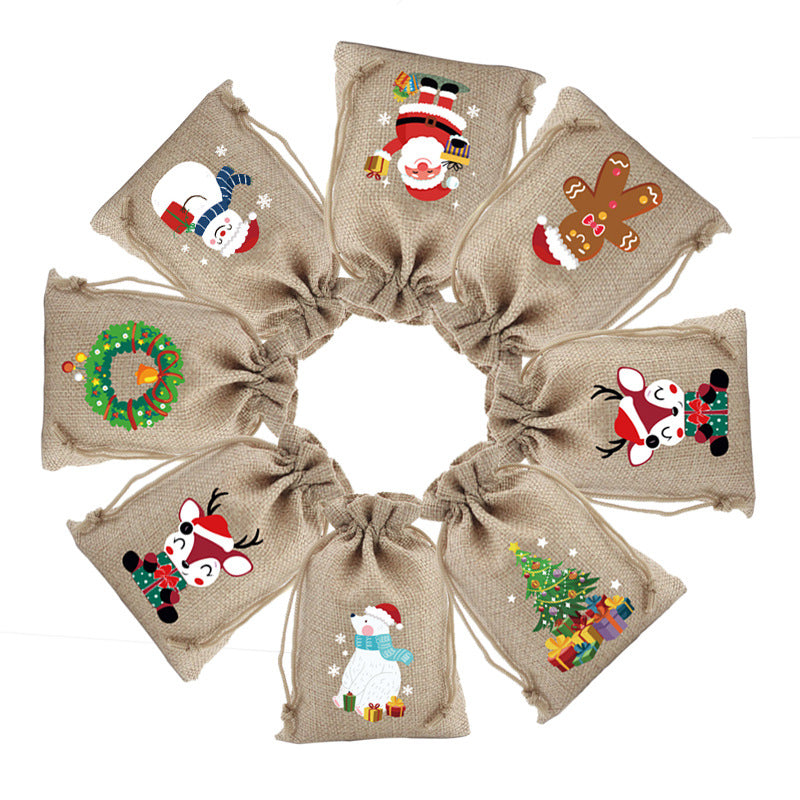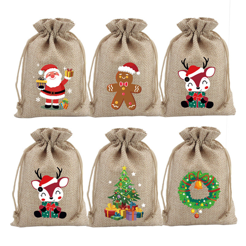 Wholesale 10pcs Christmas Linen Candy Dim Sum Bags with Drawstring Small Bags