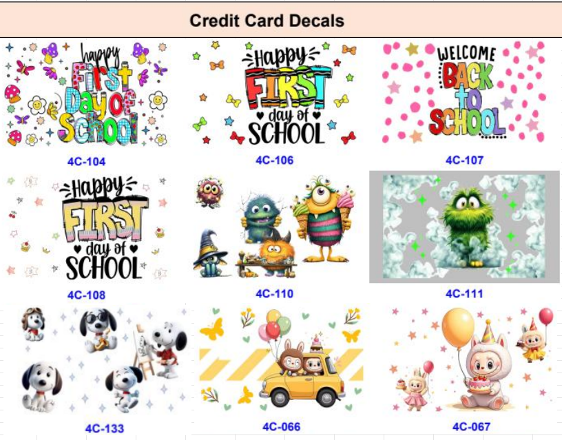 Wholesale 10pcs/pack Back To School Credit Card Stickers Decals