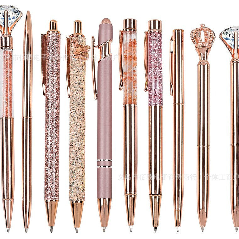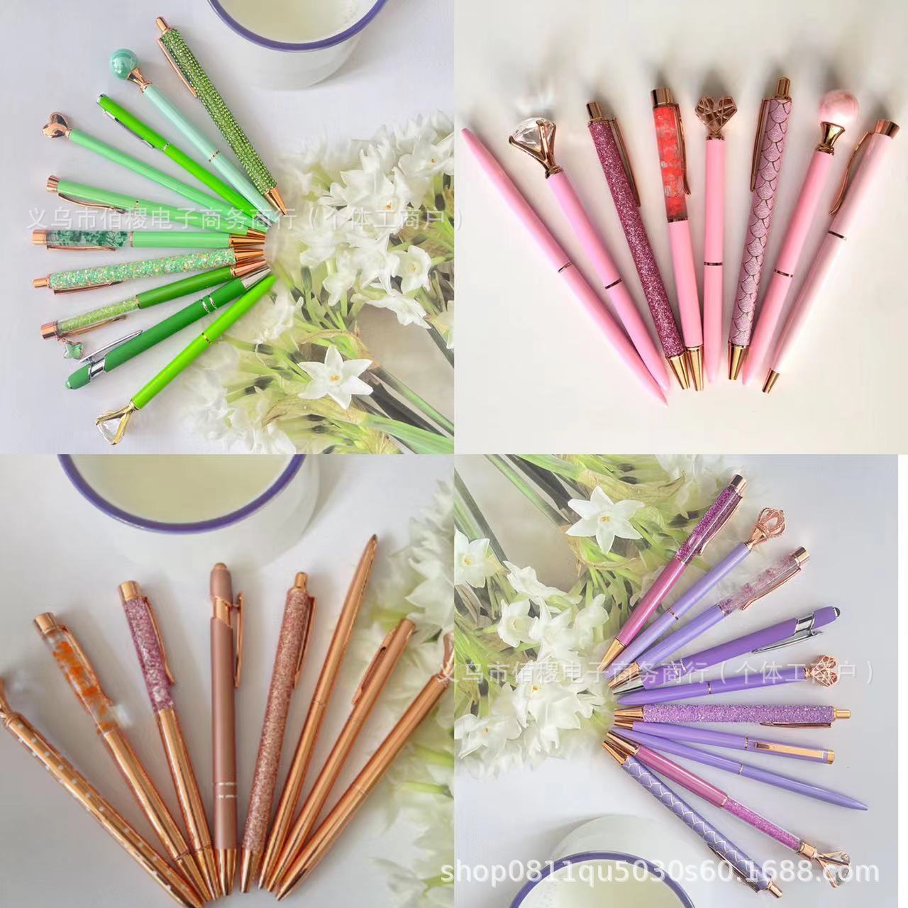 Wholesale 10pcs rose gold pink purple green rhinestone Metal Pen