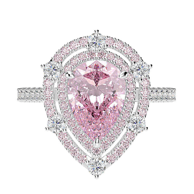 Anillos de diamantes de alto carbono rosa de plata de ley 925 al por mayor OLY-RS-XY001