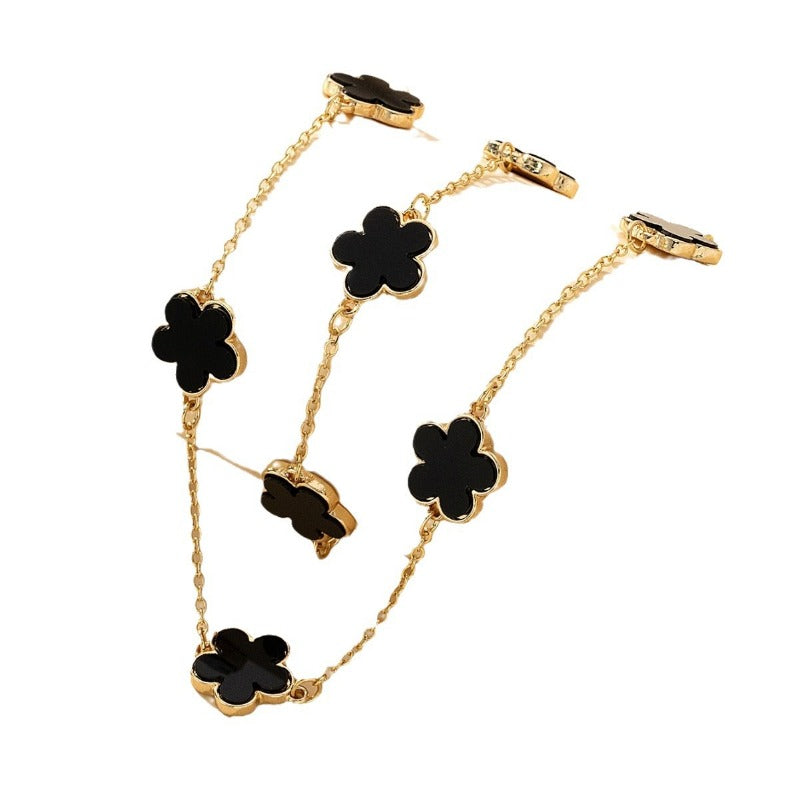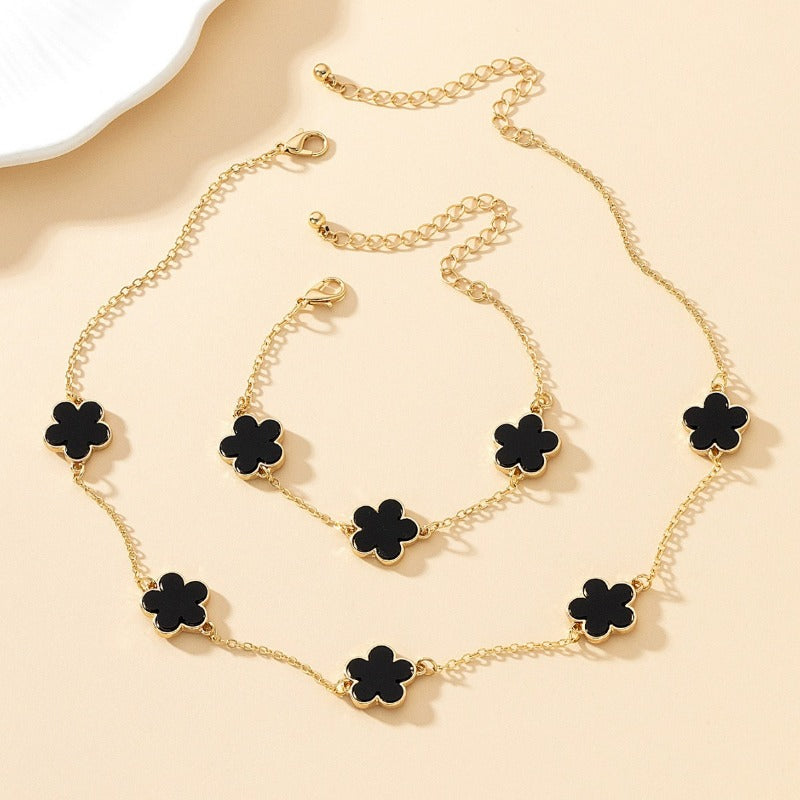 Wholesale Alloy Delicate Black Imitation Mother-of-Pearl Flower Bracelet Necklace