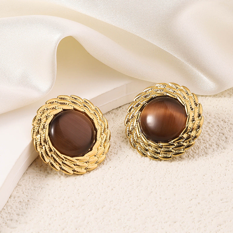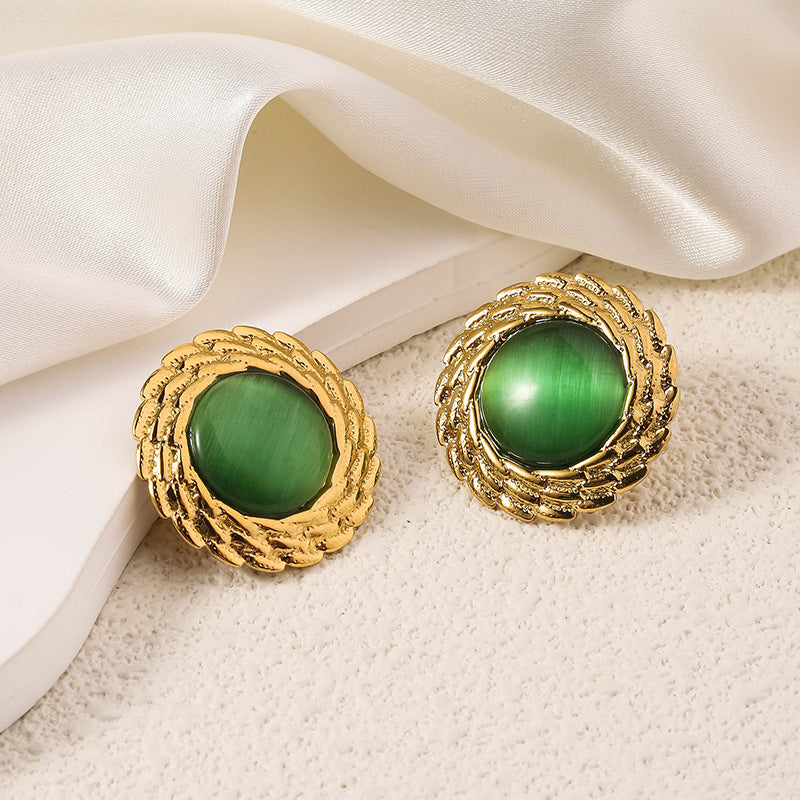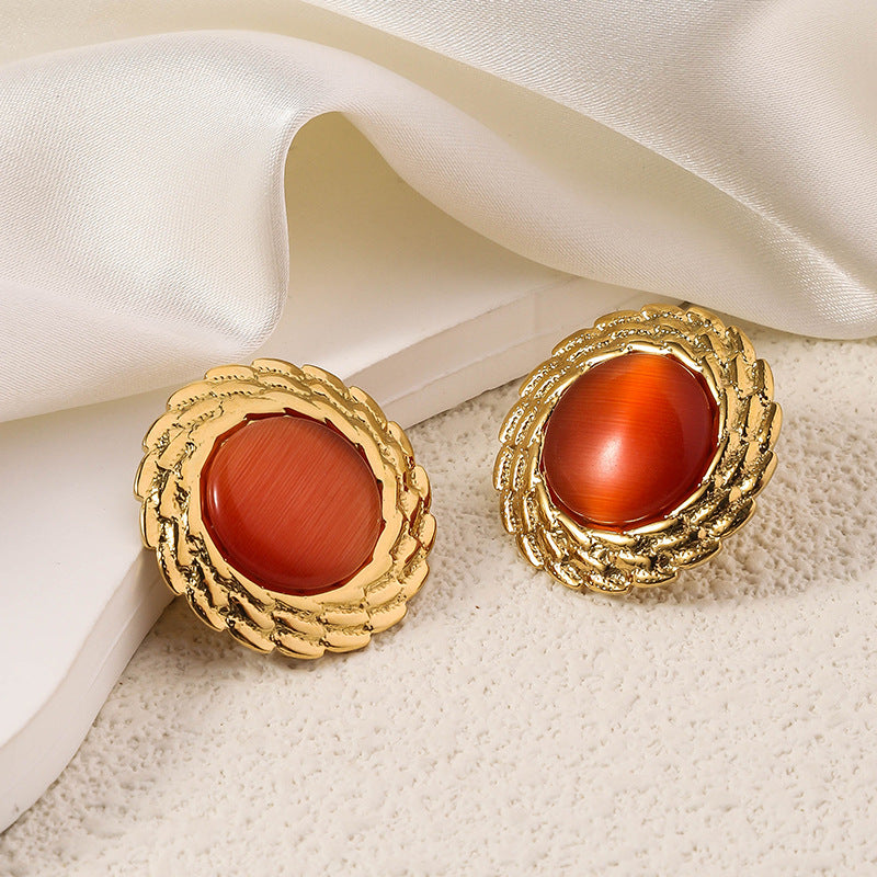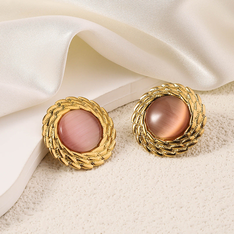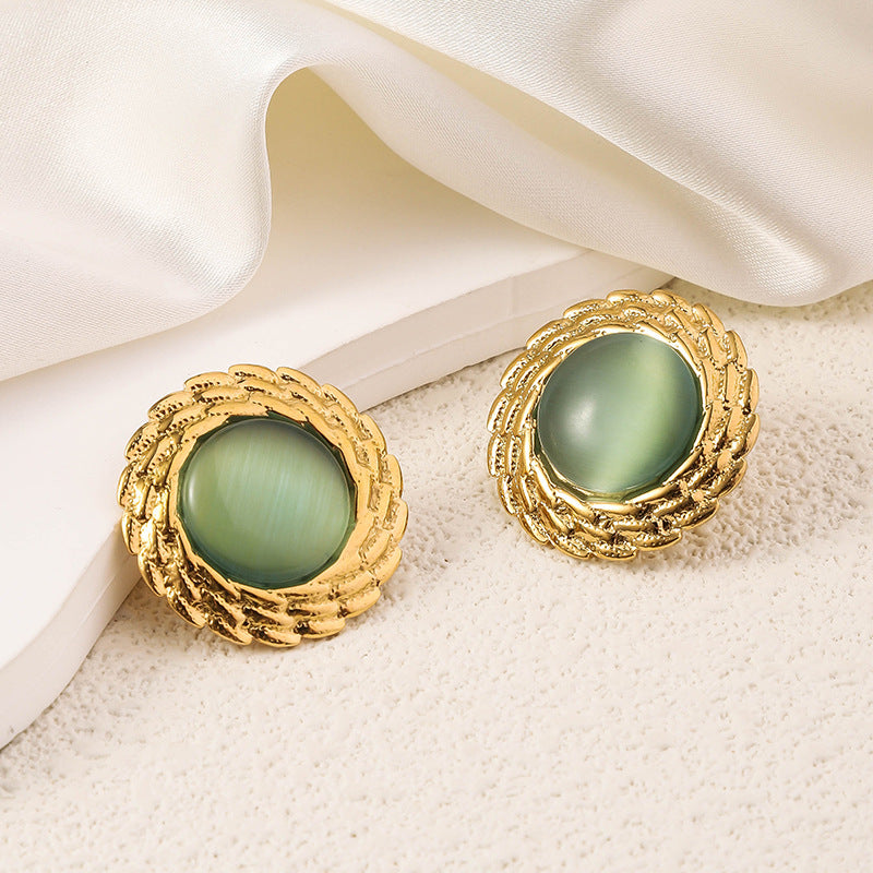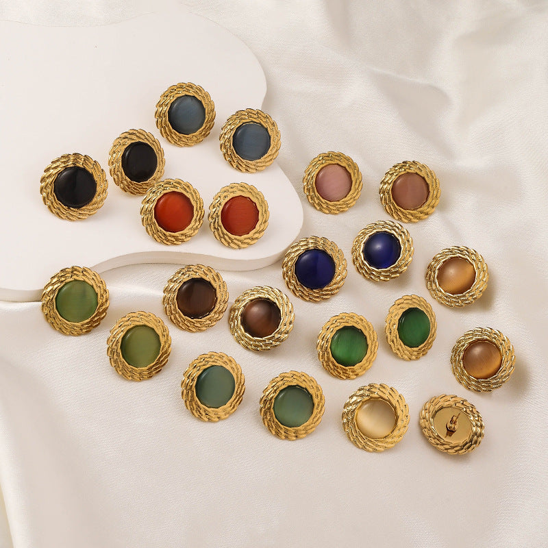 Wholesale Antique Multicolor Round Fried Dough Twists Plated 18k Gold Opal Stainless Steel Earrings