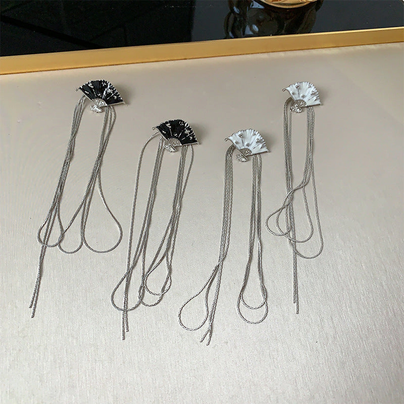 Wholesale Design Enamel Fan Tassel New Chinese Style Retro Temperament Personality Earrings Ear Studs
