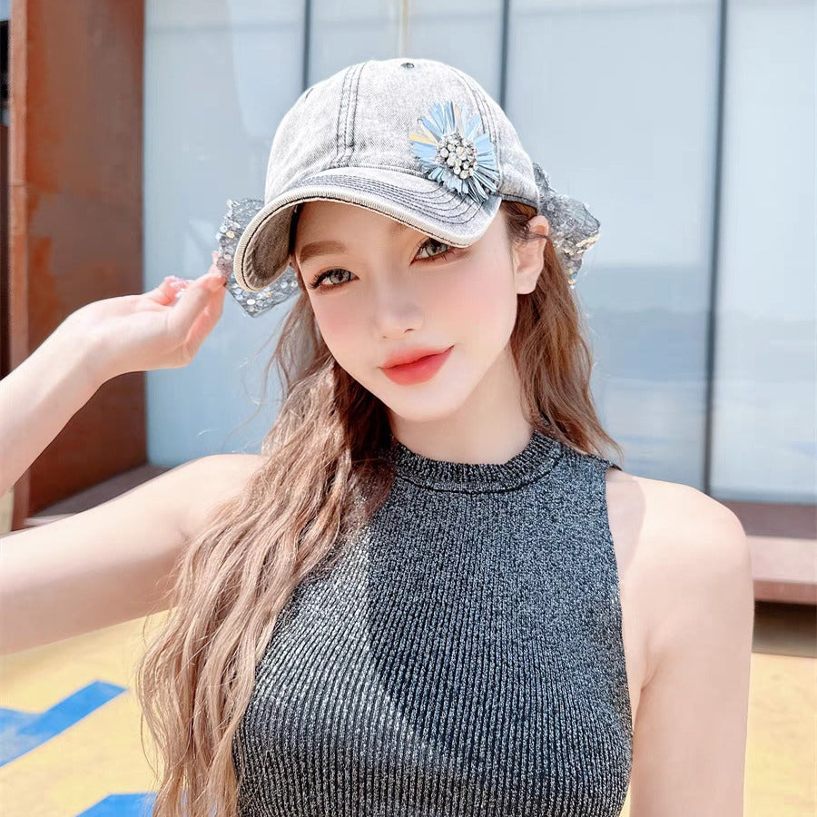 Wholesale Distressed Back Sequin Cloud Bow Baseball Cap