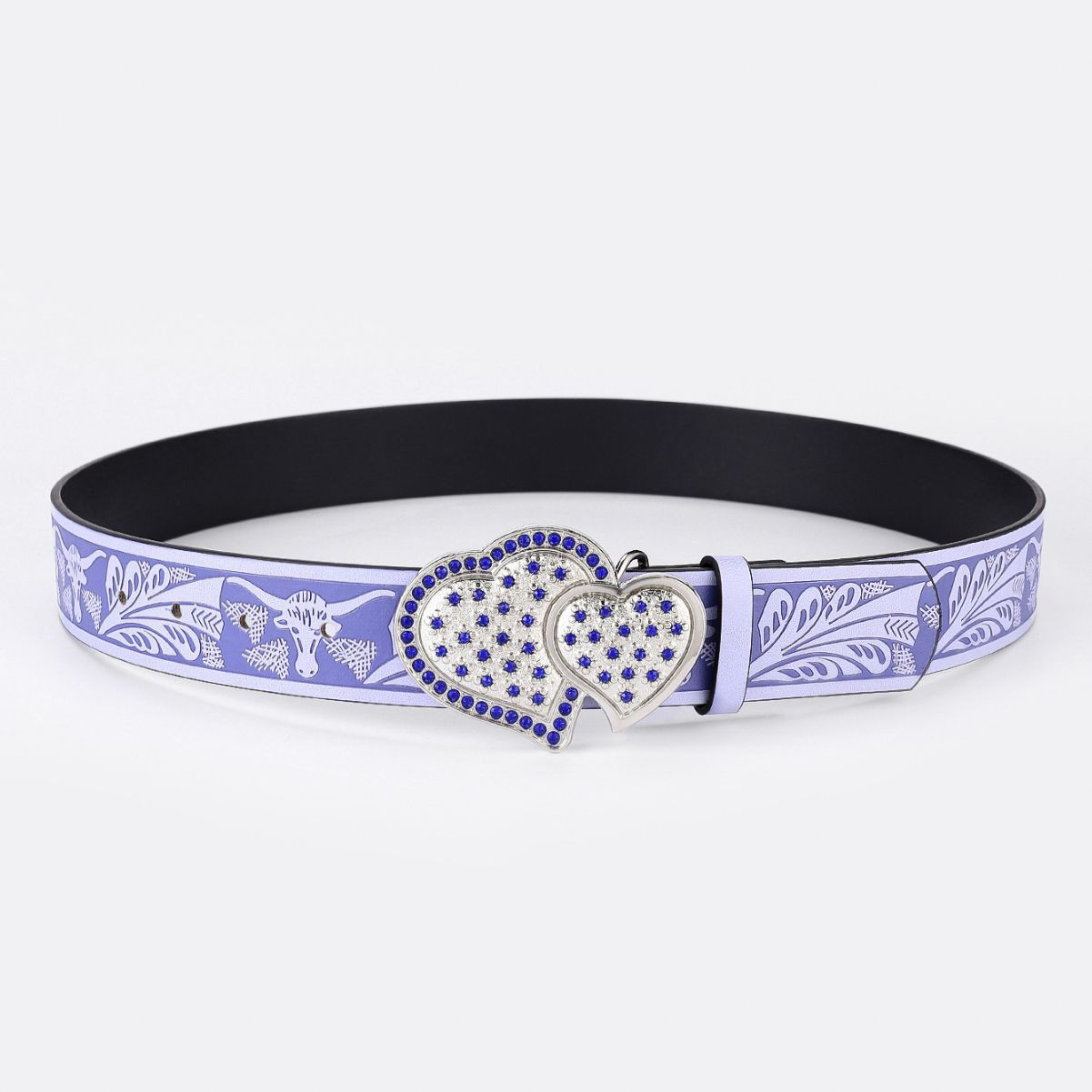 Wholesale Double Heart Sapphire Pattern Metal Buckle PU Leather Belt
