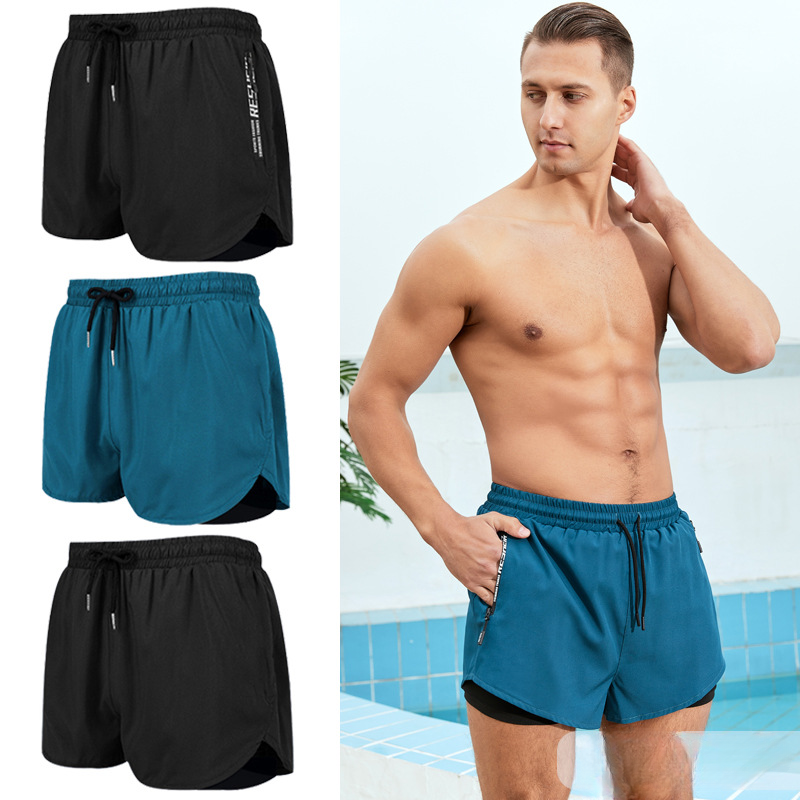Anti la vergüenza de doble capa al por mayor suelta Boxer Dry Boxer Polyéster Shorts de trajes de baño