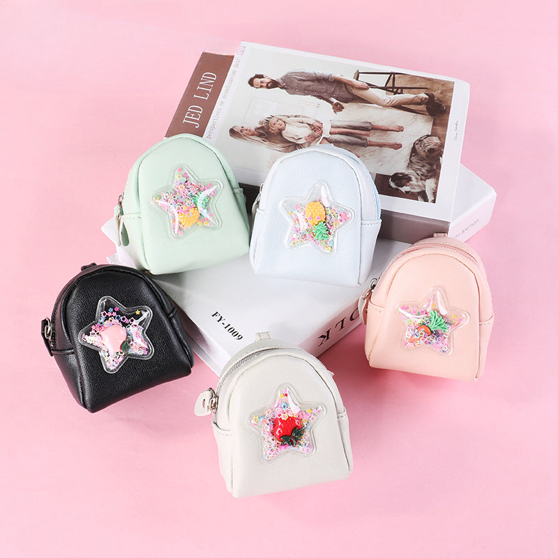 Wholesale Fruit Quicksand Mini Coin Purse PU leather Keychain