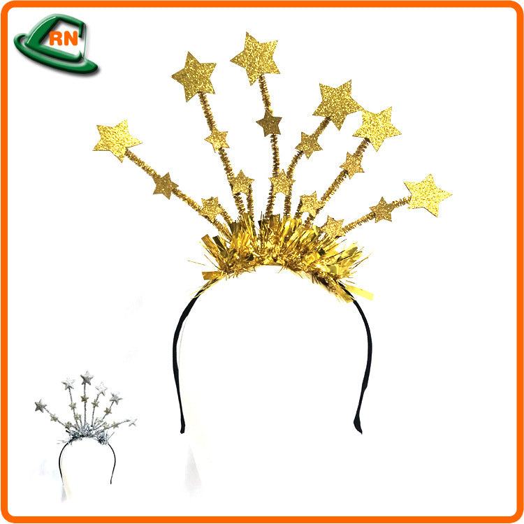 Diadema de seda brillante con pentagrama dorado y plateado al por mayor