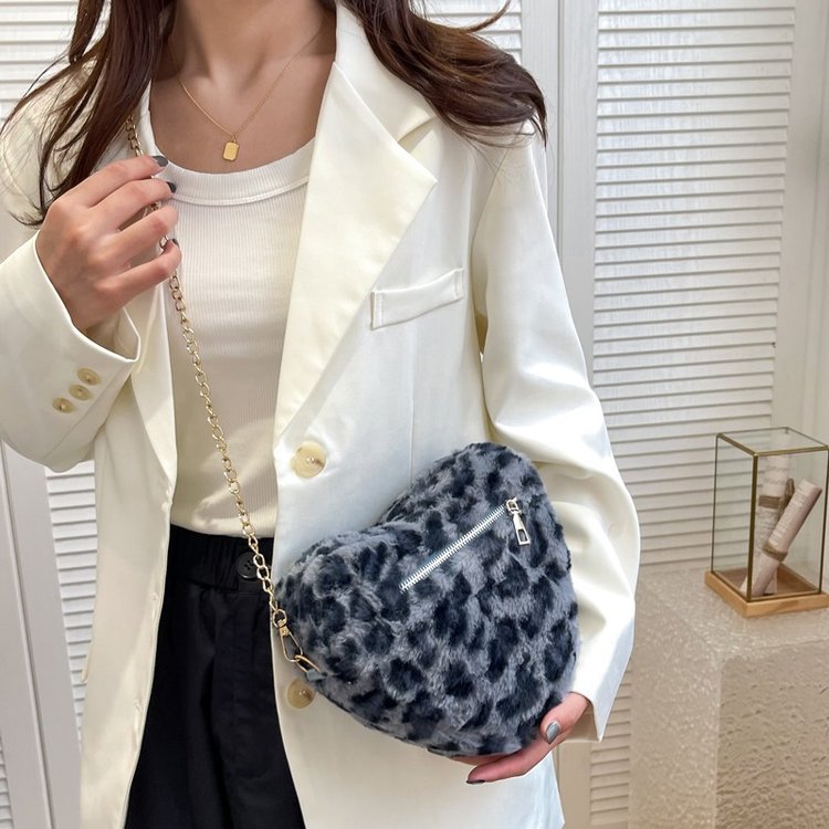 Wholesale Leopard Print Plush Heart Crossbody Bag