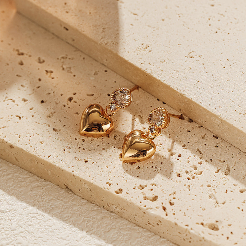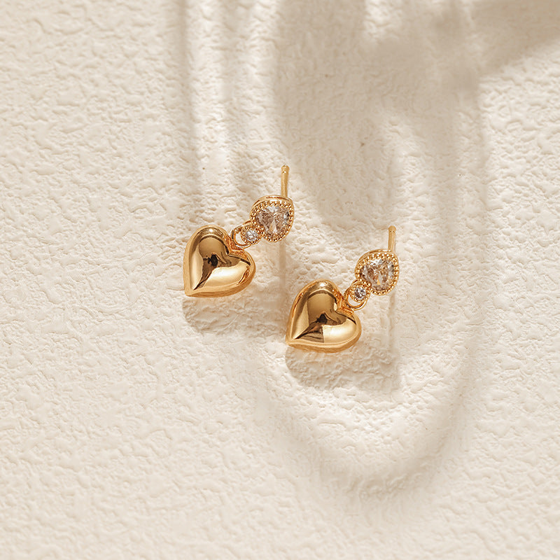 Wholesale Love S925 Silver Needle Inlaid Zircon Gold Plated Earrings