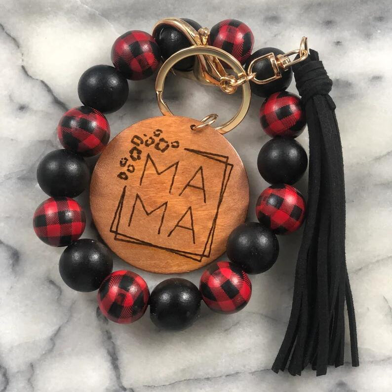 Wholesale Mother's Day Leopard Print Wooden Beads Tassel Bracelet Keychain