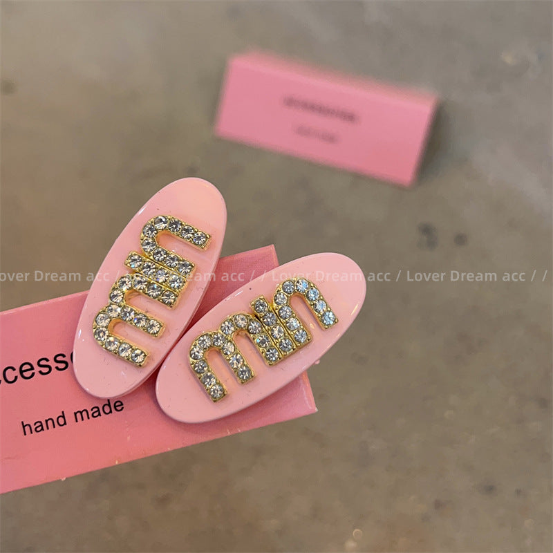 Wholesale Pink Rhinestone Letter Love Mix Material Hair Clips