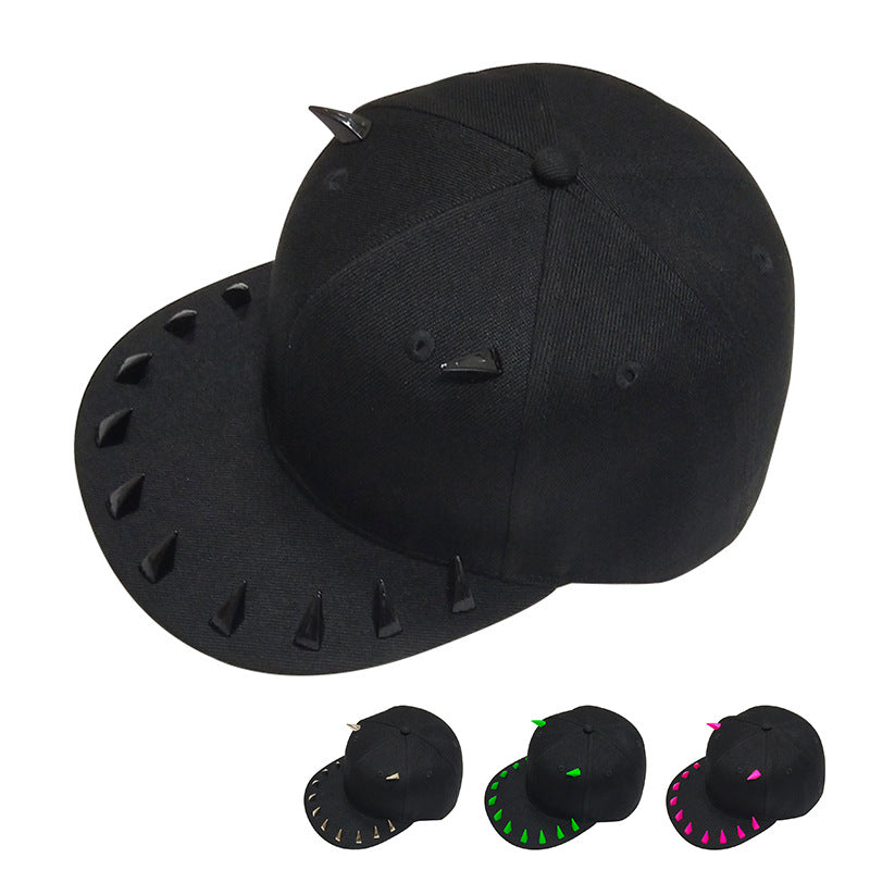Wholesale Punk Horn Rivet Hip Hop Flat Brim Baseball Cap