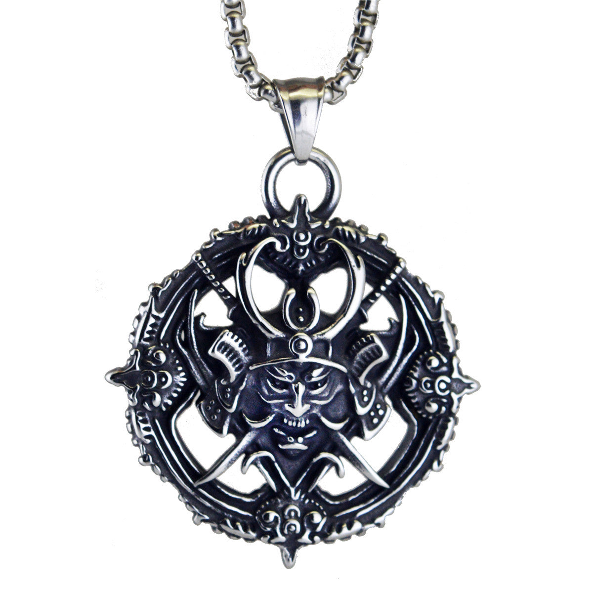 Wholesale Retro Domineering Turntable Samurai Devil Titanium Steel Pendant Necklace