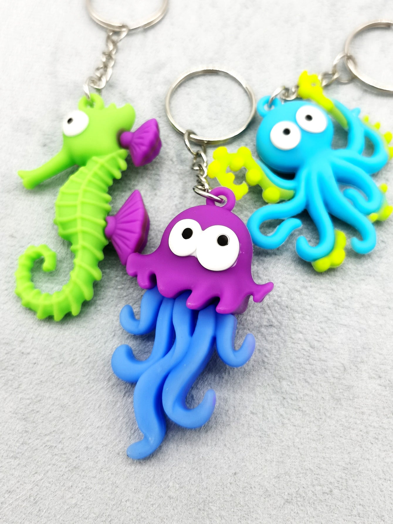 Llavero al por mayor del PVC del calamar del animal marino de la simulación