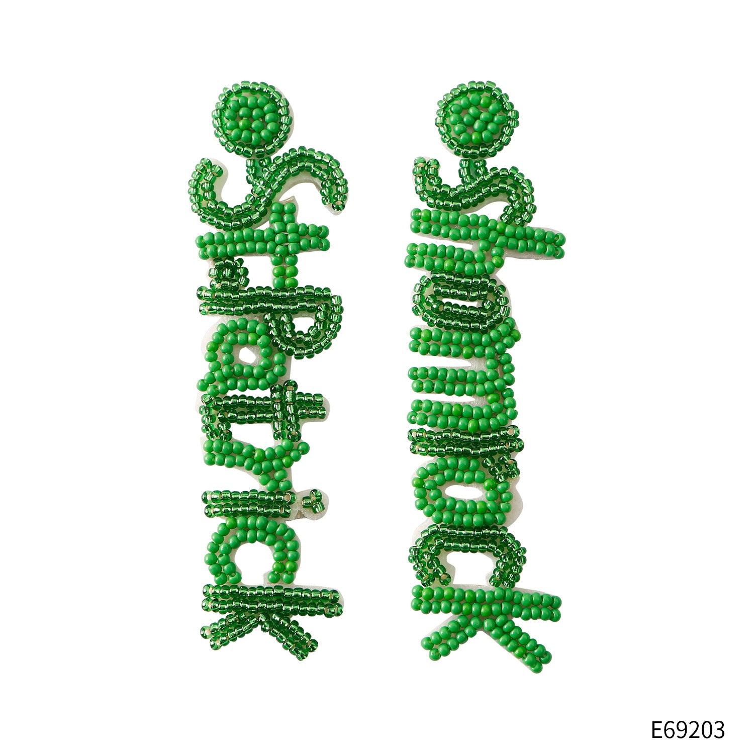 Wholesale St. Patrick's Day Green Letter Rice Beads Earrings