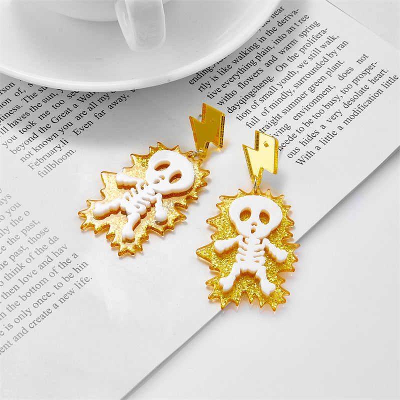 Wholesale Acrylic Thunderbolt Skull Skeleton Earrings